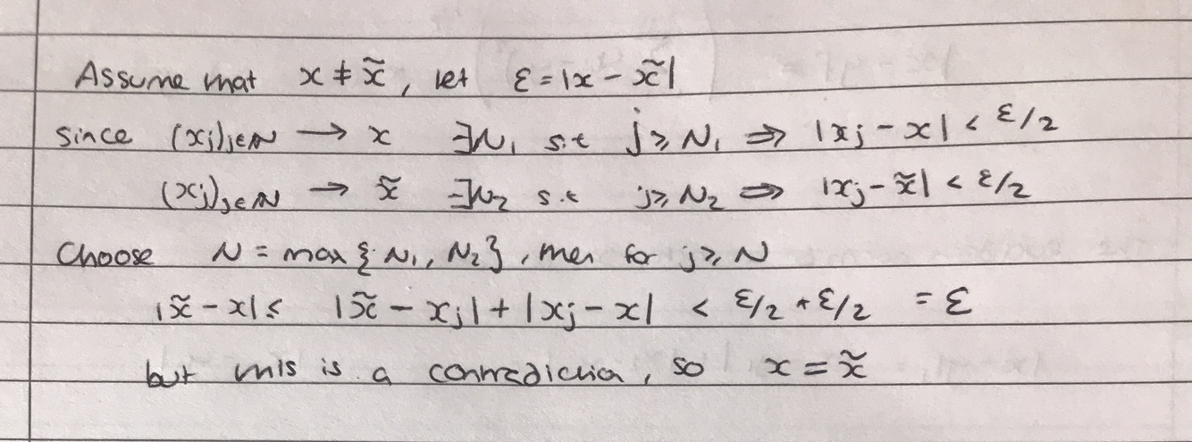 Prove the uniqueness of limits for a sequence (xj)