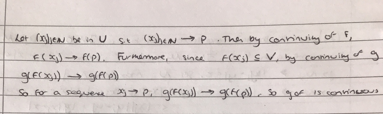 f is continuous at p, if for every sequence (xj) which converges to p, f(xj) converges to f(p)