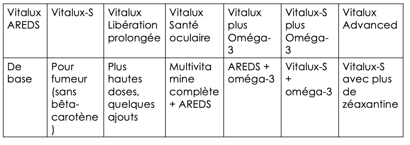 ¤ Basée sur l’étude AREDS (Age-Related Eye Disease Study)