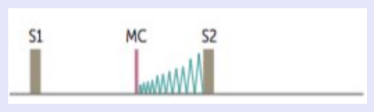 due to abrupt halt in leaflet motion in diastole, after rapid opening due to fusion at leaflet tips