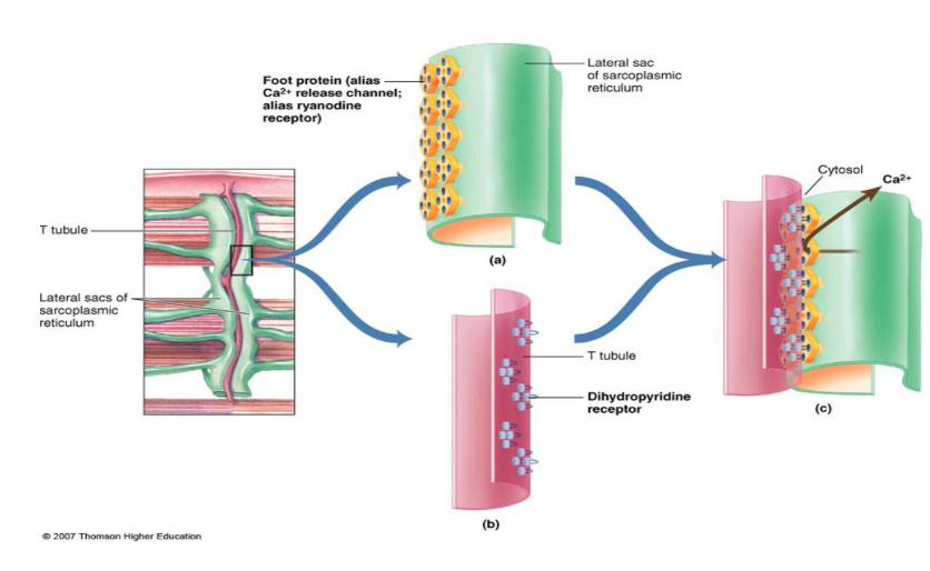 Cells are big, thick and long. Membrane is where the depolarisation occurs to initiate contraction.They conduct electrical impulses to the throughout cell (every sarcomere); the electrical impulse signals for the release of Ca2+ from adjacent terminal cisternae