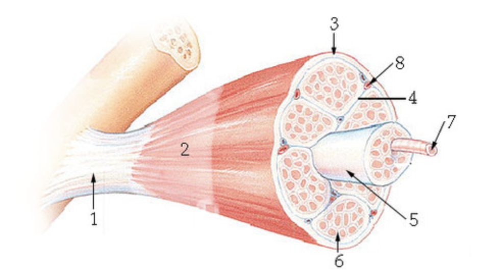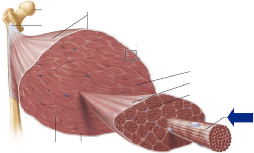 fibrous connective tissue that surrounds groups of 10-100 individual muscle fibers called fascicles