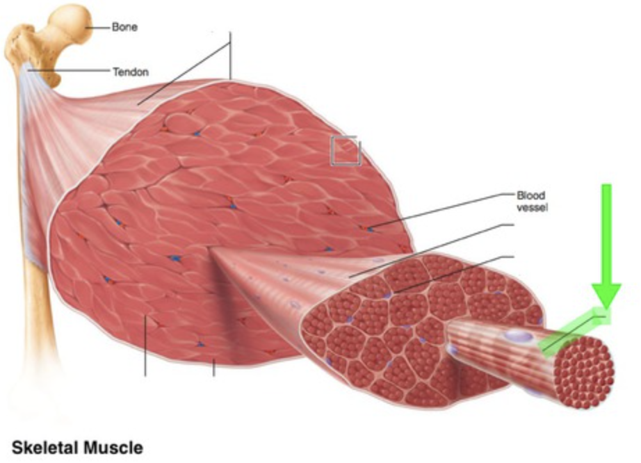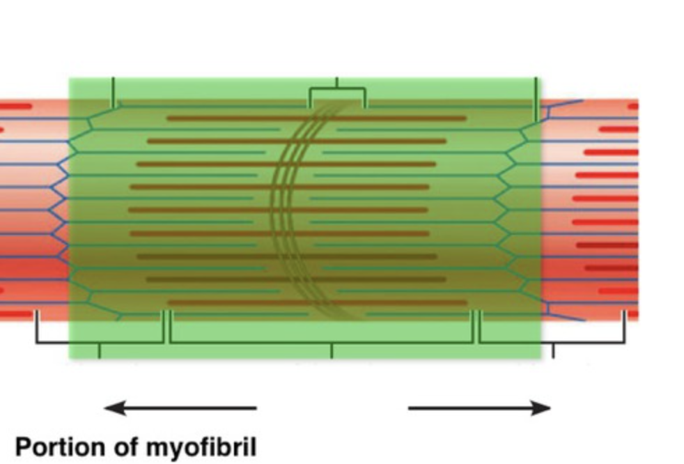 the functional unit of muscle that produces muscular contraction & consists of repeating sections of actin & myosin