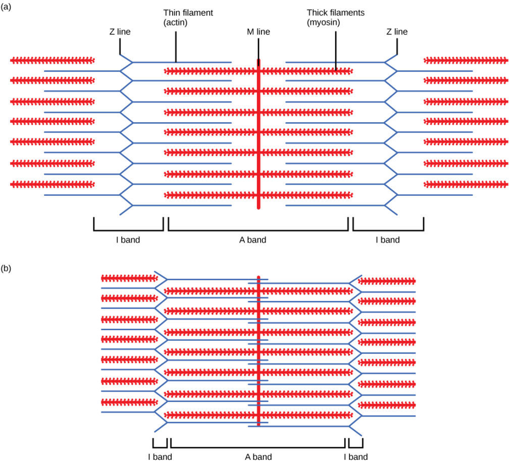 Each muscle fibre has multiple myofibril (long cylindrical organelles made of protein that are specialised for contraction)