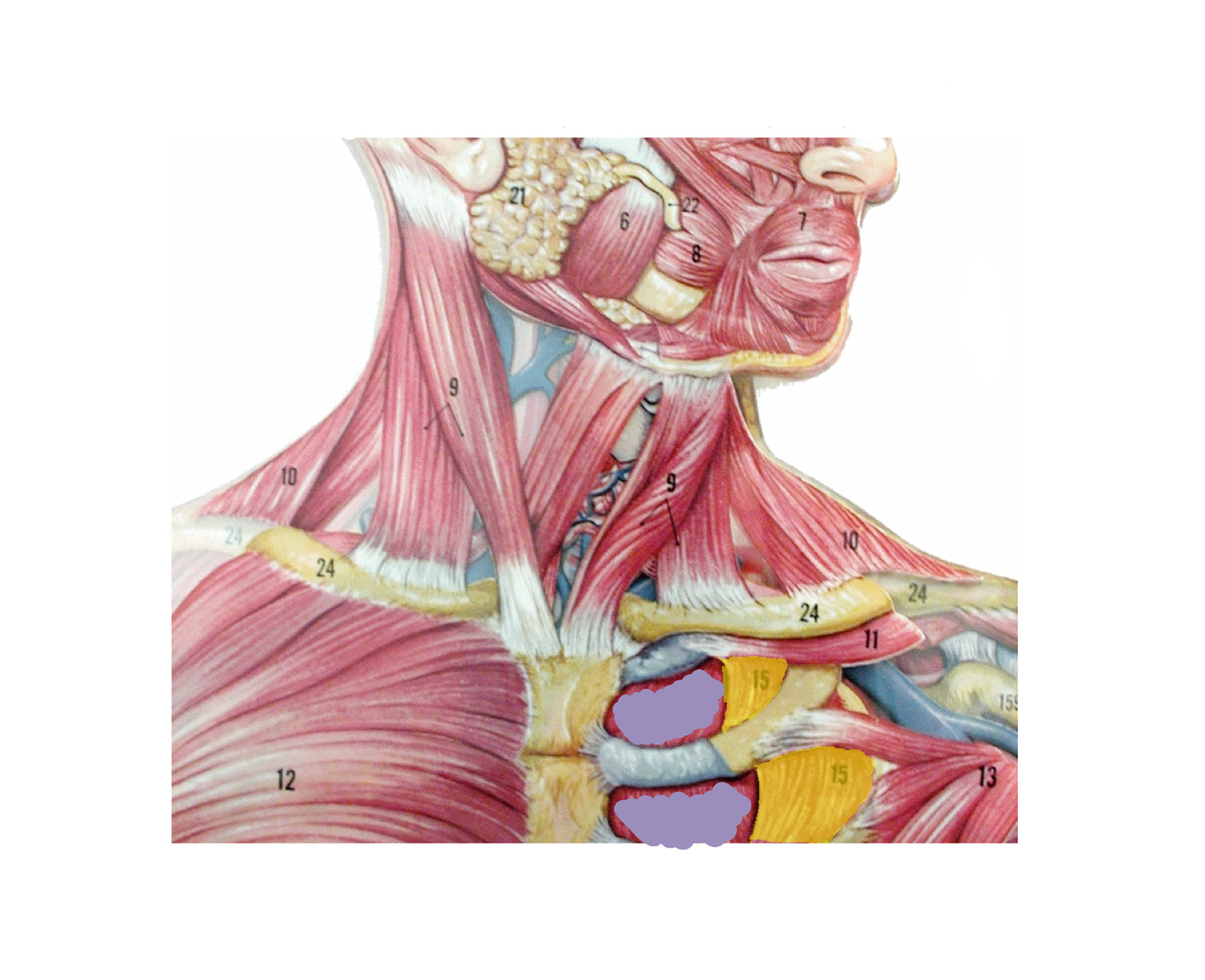 Purple - internal intercostal - depresses the ribs for exhaling
