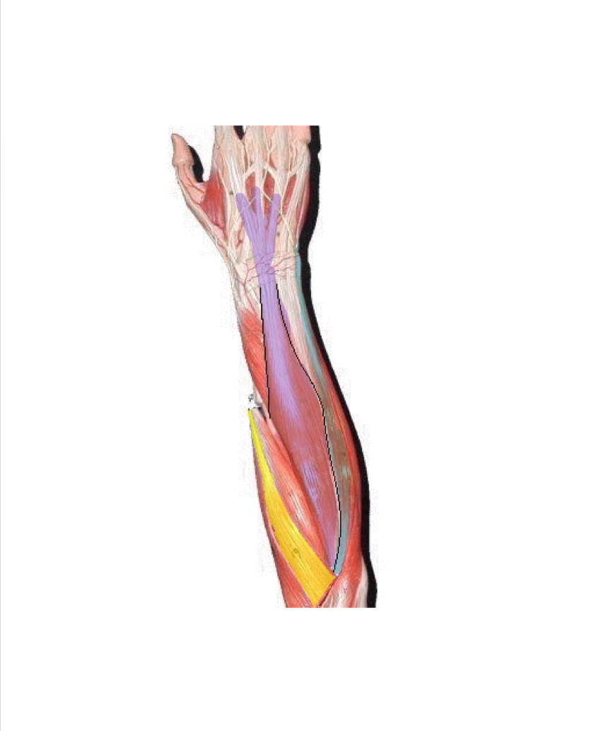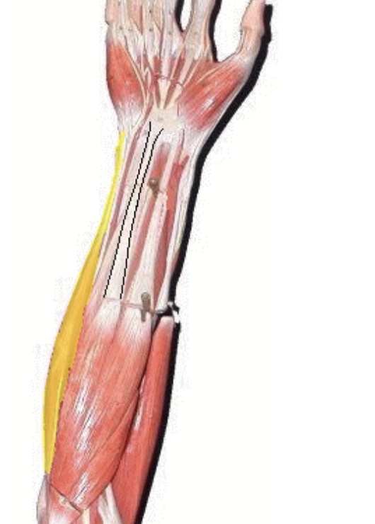 Yellow - Extensor carpi radials longus - extends and abducts hand