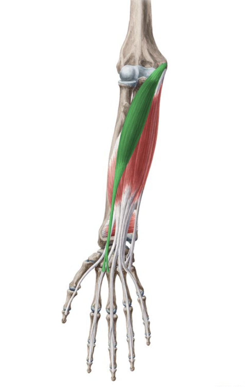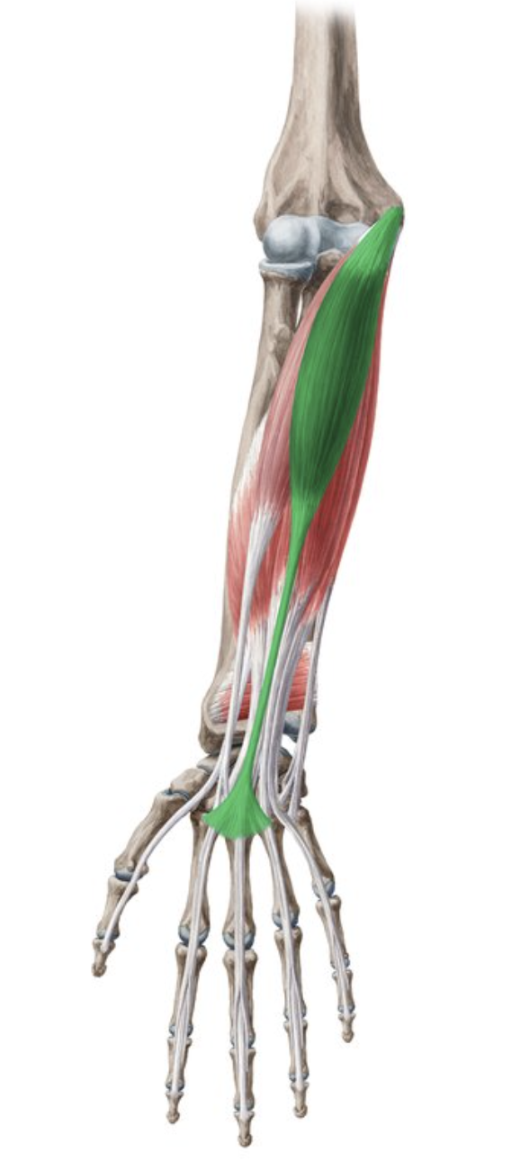 Green - extensor carpi ulnaris - extends and adducts hand