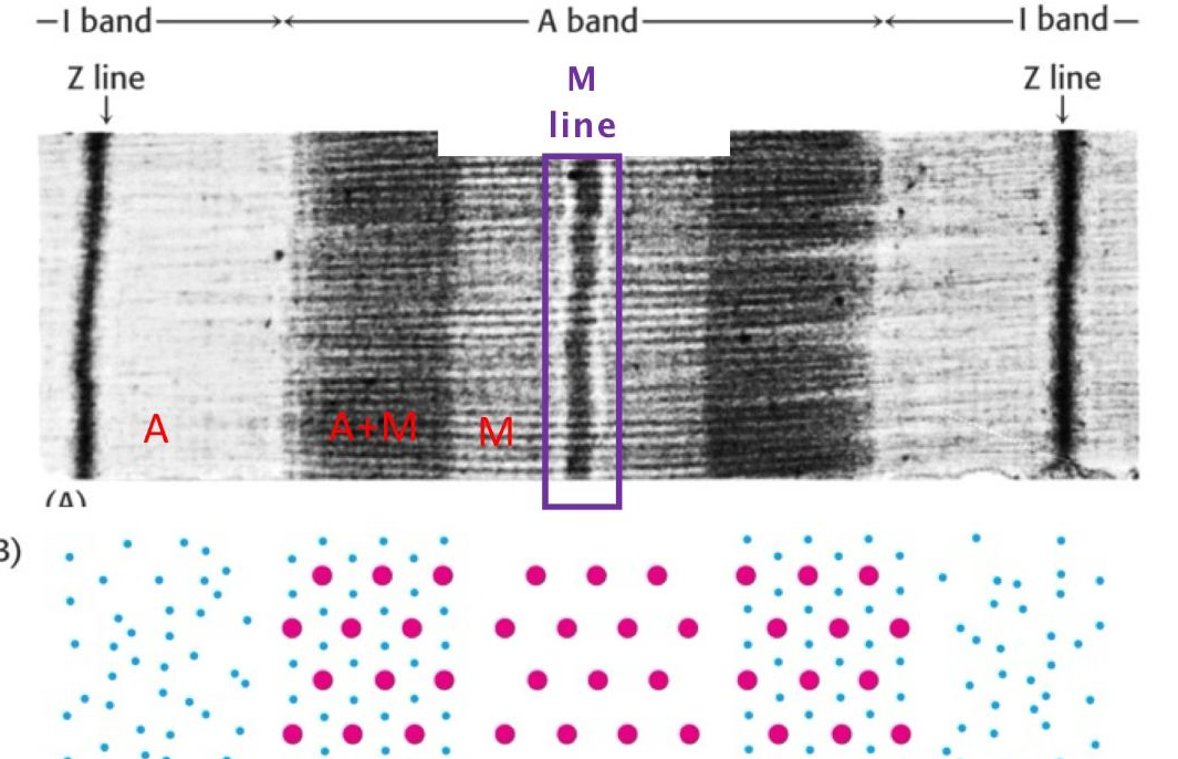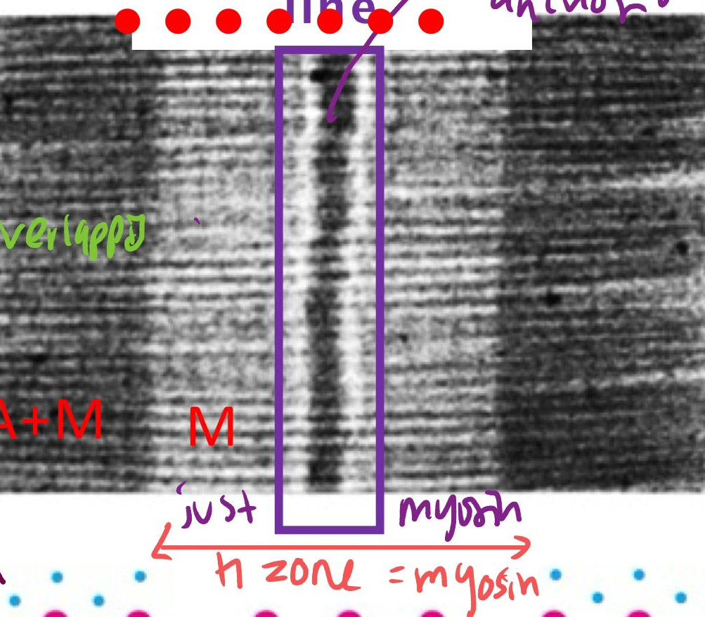 actin and myosin with actin overlapping