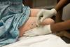 By tib. & on lateral part of leg