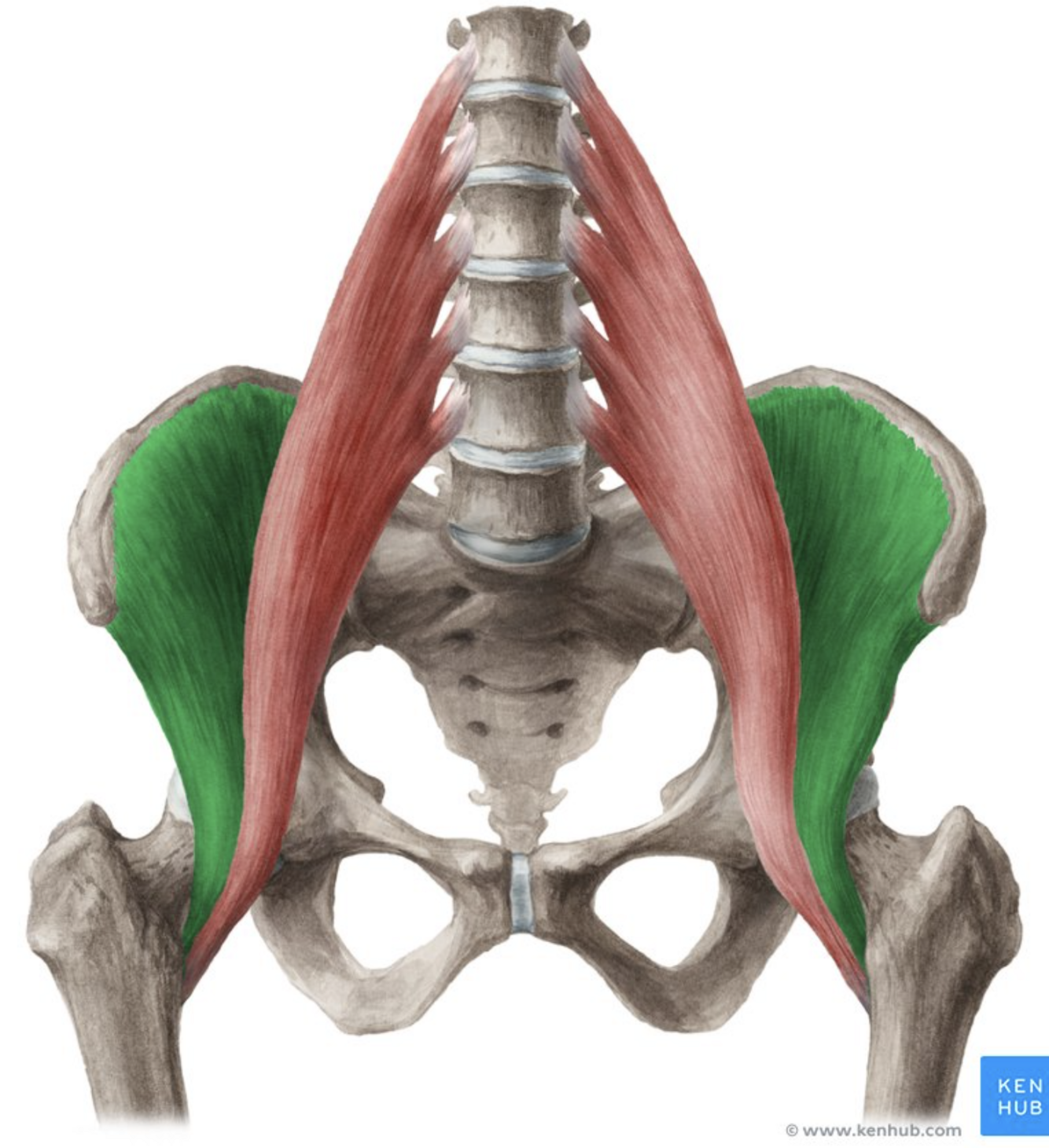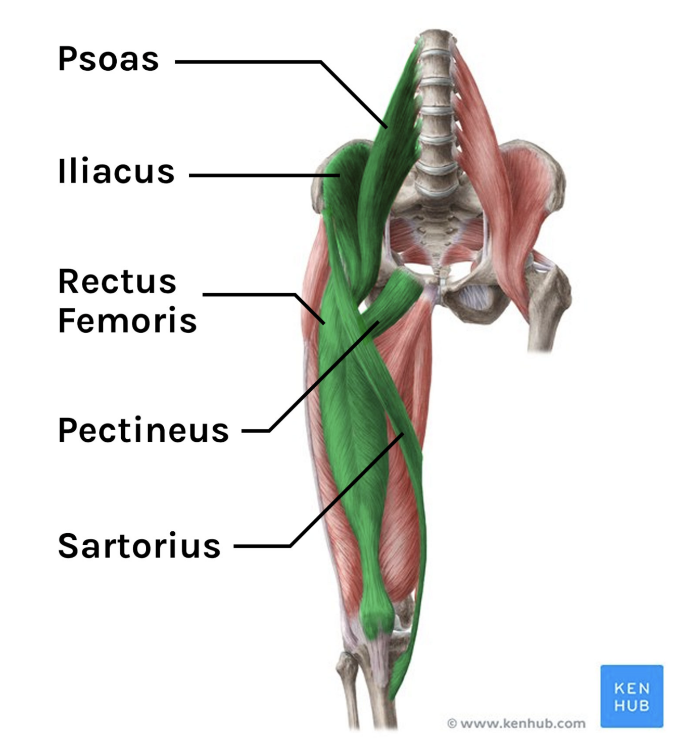Main job is to flex the hip, but it also plays a part in lateral flexion (side stretching) of your torso and stabilising your lumbar spine.