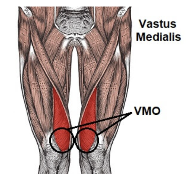 The portion of the muscle that is just above the knee is the VMO. This muscle is used to extend the leg at the knee and to stabilize the patella (kneecap)