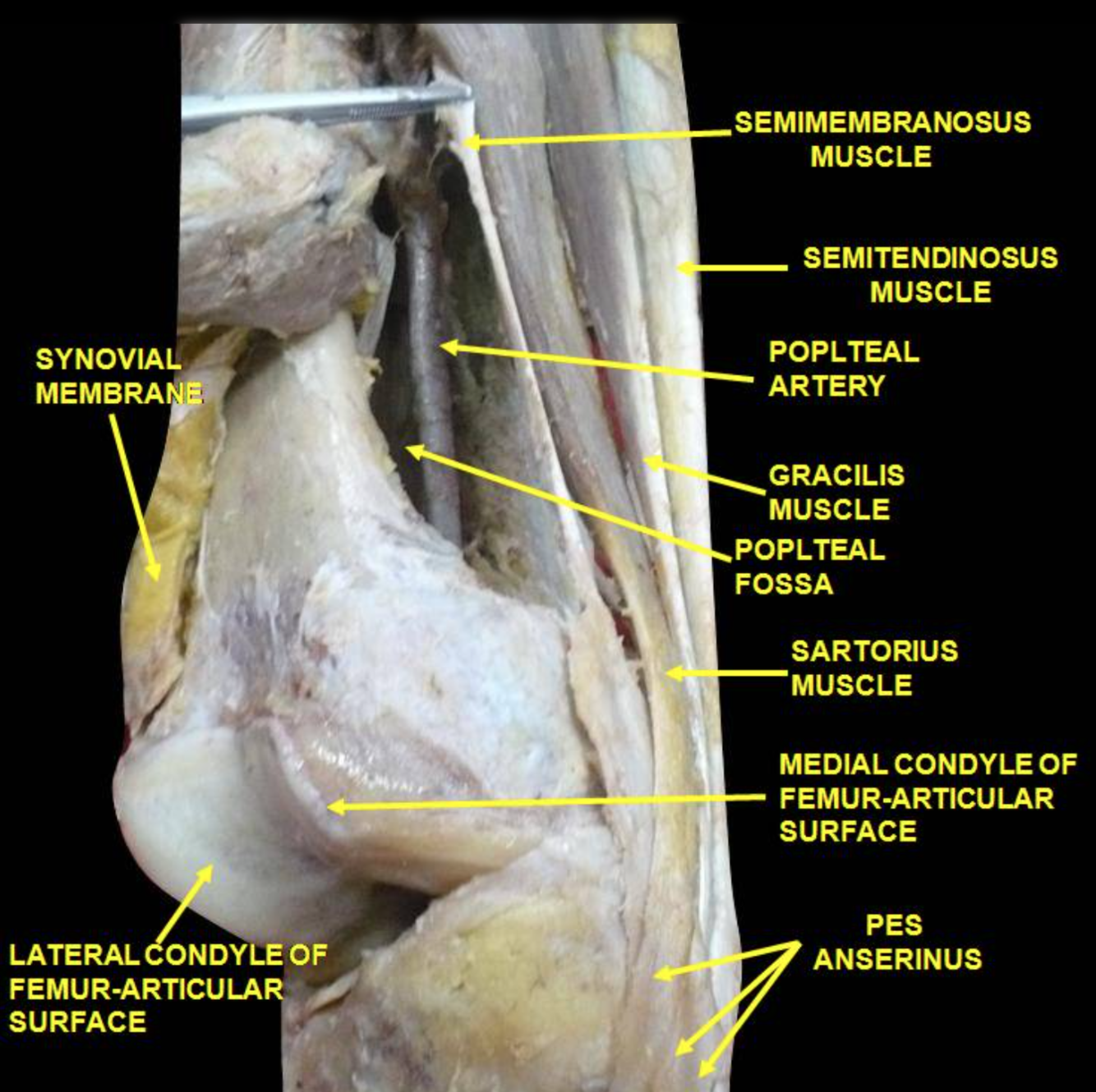 Where does the long head of biceps femurs, semimembranosus and semitendenosis (hamstrings) insert