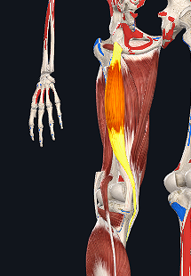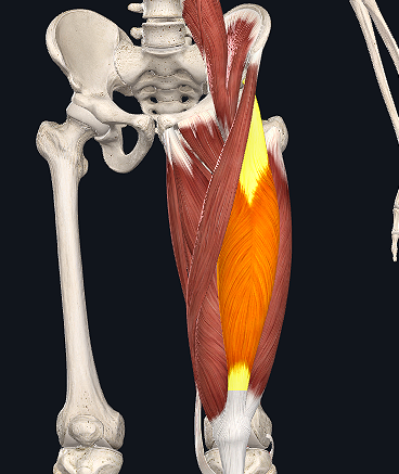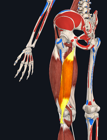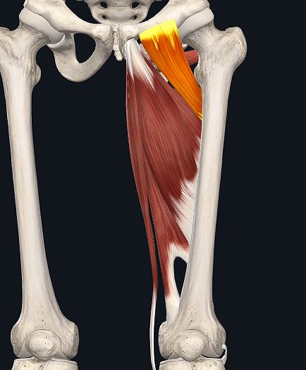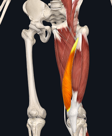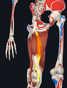 Function: Lateral rotation and extension of femur (proximal and distal parts of muscle also contribute to abduction and adduction of femur respectively)