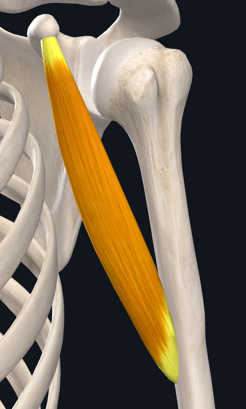 Insertion - humerus, at the level of the deltoid tuberosity.