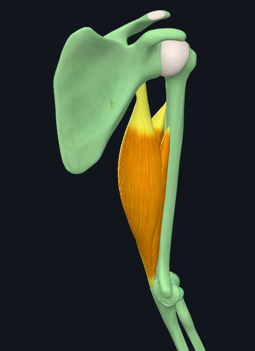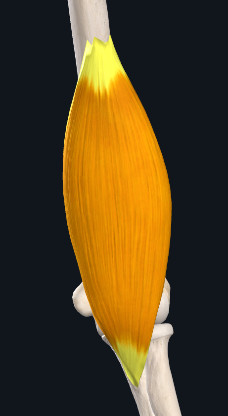 Insertion - ulnar tuberosity, just distal to the elbow.