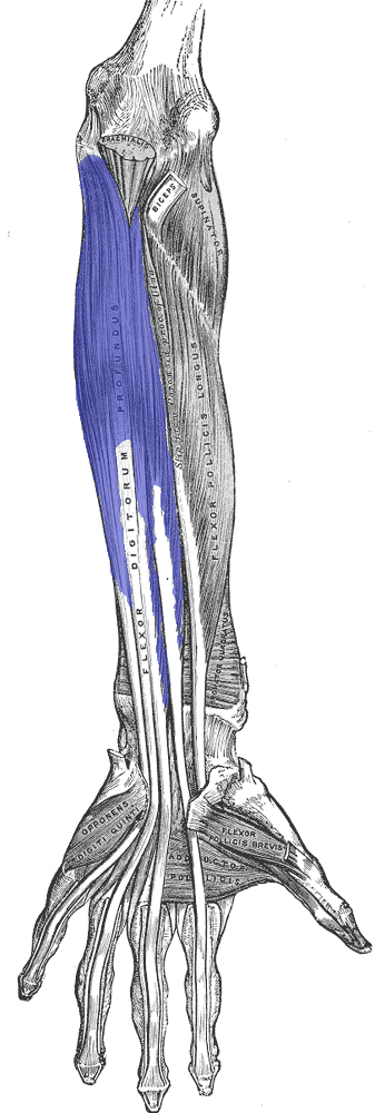 nerve: median nerve (ant. inteross. branch), ulnar nerve