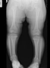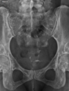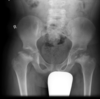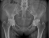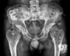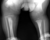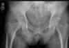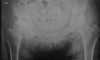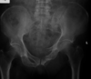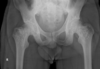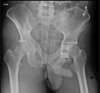 Alargamento e radioluscência na sincondrose isquiopúbica, que simula neoplasias, infecção;