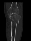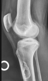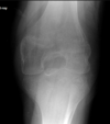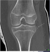 Fratura do platô tibial lateral - Schatzker tipo 2 (traço de fratura + depressão do plato lateral).