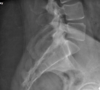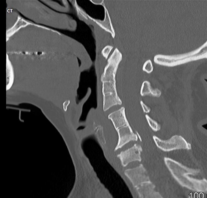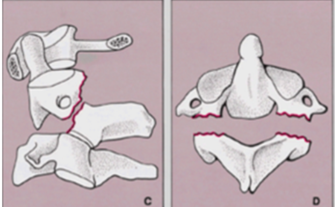 Fratura dos elementos posteriores de C2 com luxação anterior do corpo.