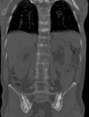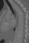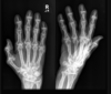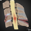 Coluna: Shiny corners (romanus): erosões nos cantos vertebrais com esclerose reativa;