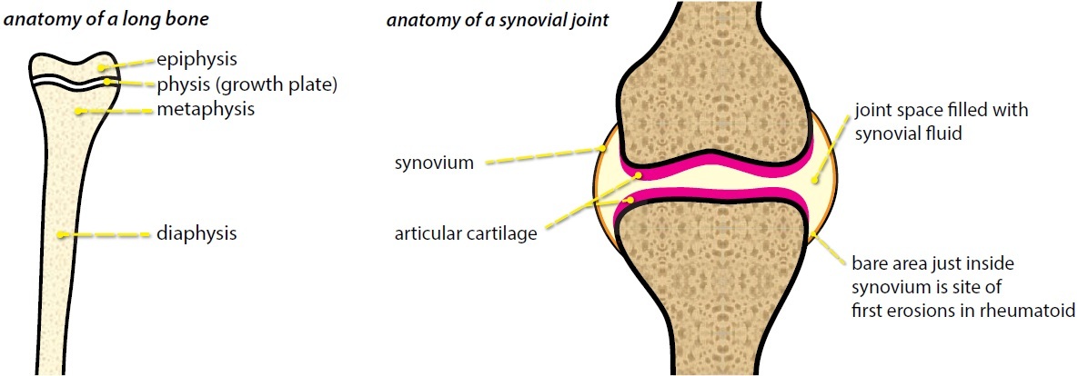 In broad categories, arthritis can be divided into degenerative (osteoarthritis), inflammatory (rheumatoid arthritis, spondyloarthropathies, and juvenile idiopathic arthritis), crystal deposition (gout, calcium pyrophosphate dihydrate, and hydroxyapatite), hematologic (hemophilia), and metabolic changes.