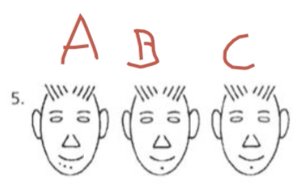 vermutlich A weil das Haar rechts leicht anders aussieht