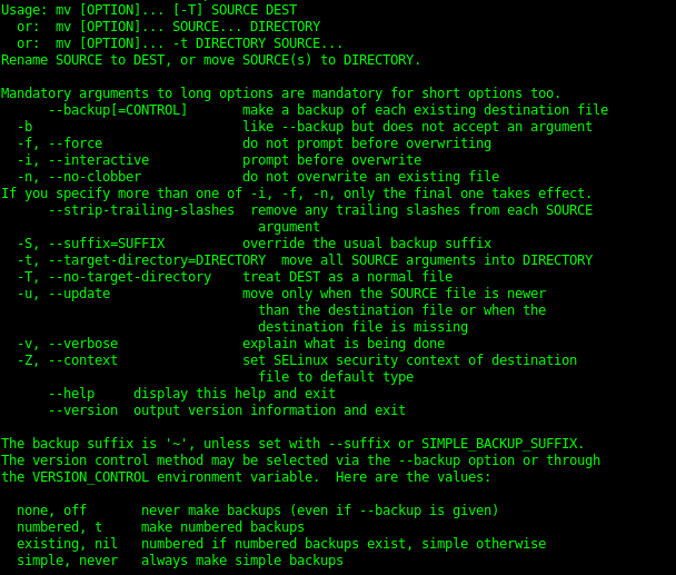 Rename SOURCE to DEST, or move SOURCE(s) to DIRECTORY.
