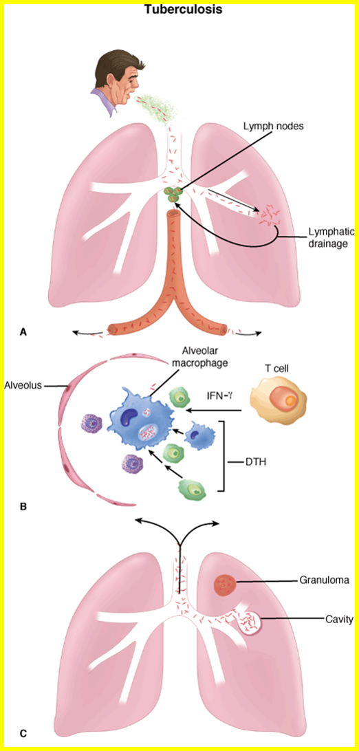 Cough (usually w/mucus), hemoptysis, excessive sweating at night, fatigue, fever, unintentional weight loss (TNF-alpha mediated)
