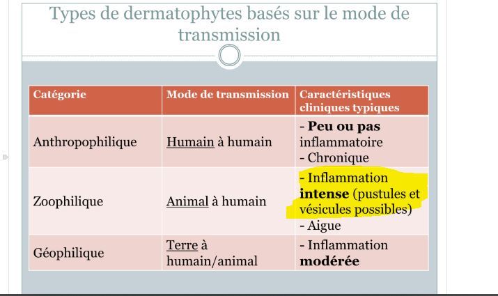 y’a 3 type de dermatophytes basé sur mode de transmission