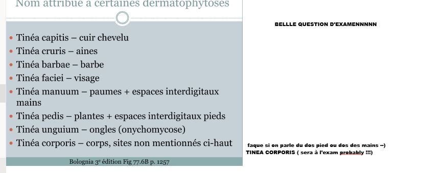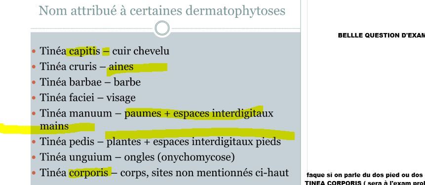TINEA MANUUM –) pour PAUME de la main + espace interdigitaux
