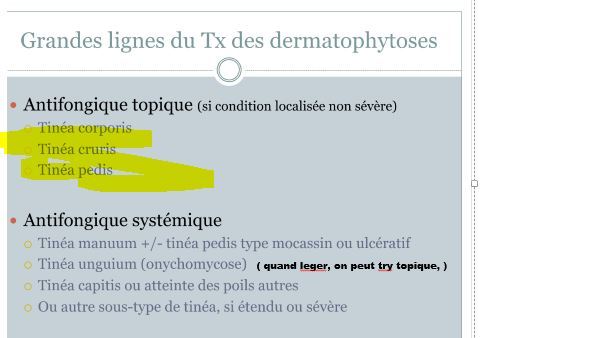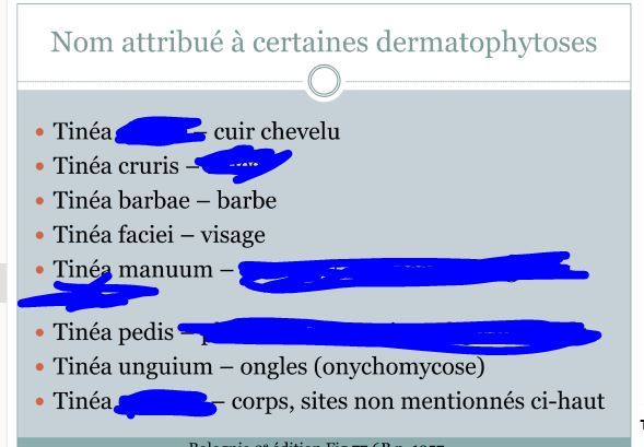 TINEA PEDIS —) PLANTE des pieds + espace interdigitaux