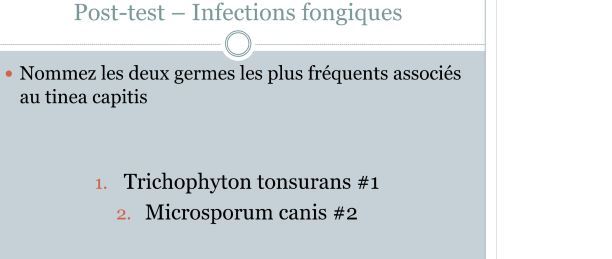 Microsporum canis ( champignon souvent retrouvé dans tinea capitis)