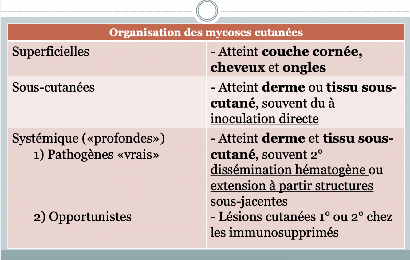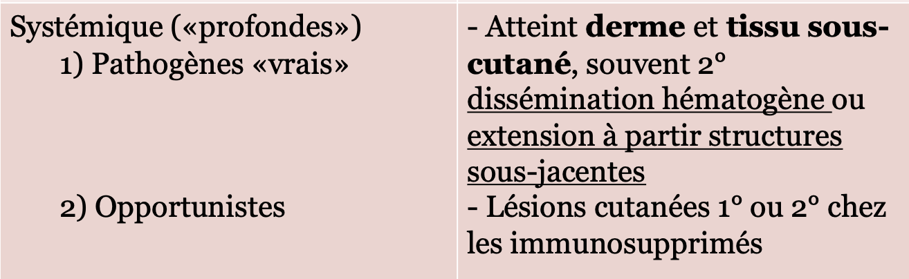 Classification clinique des mycoses: Définir SYSTÉMIQUES (“PROFONDES”) - pathogènes vrais vs opportunistes