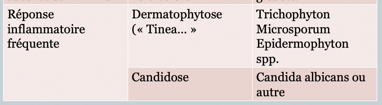 Mycoses superficielles fréquentes de la peau: RÉPONSE INFLAMMATOIRE FRÉQUENTE