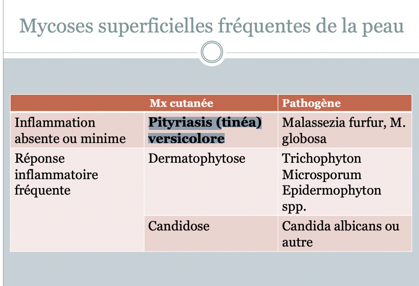 Mycoses superficielles fréquentes de la peau: INFLAMMATION ABSENTE OU MINIME