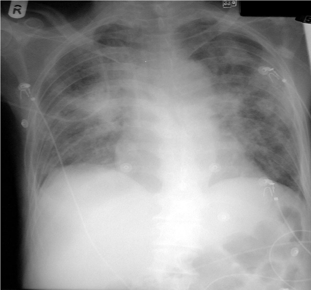 Fungal pneumonia in AML – CXR 24 hours later