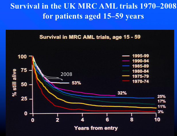 how has the survival of AML changed?