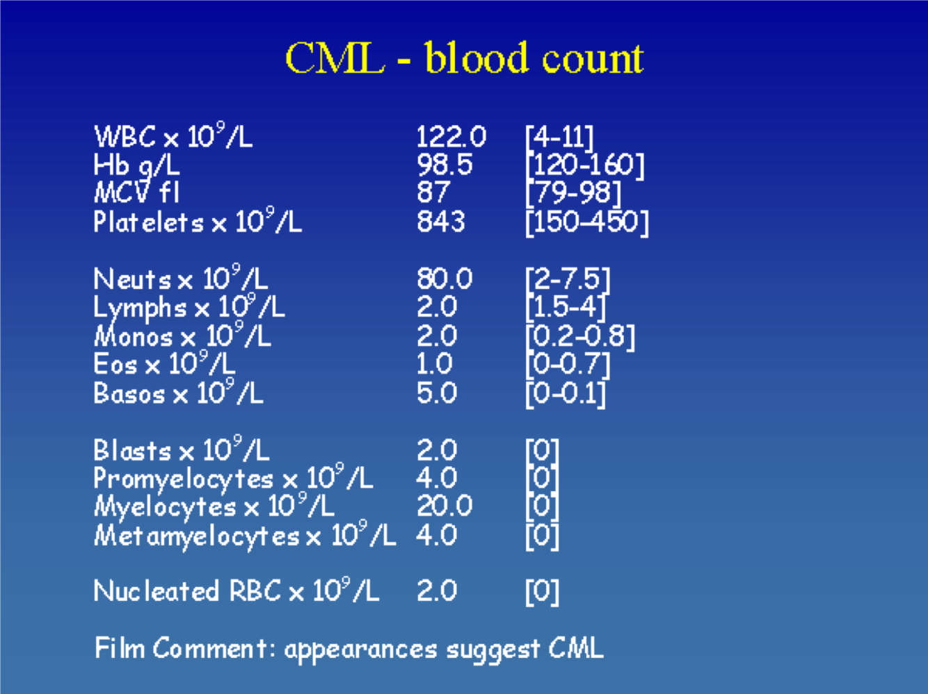 what does the blood levels look like in CML?