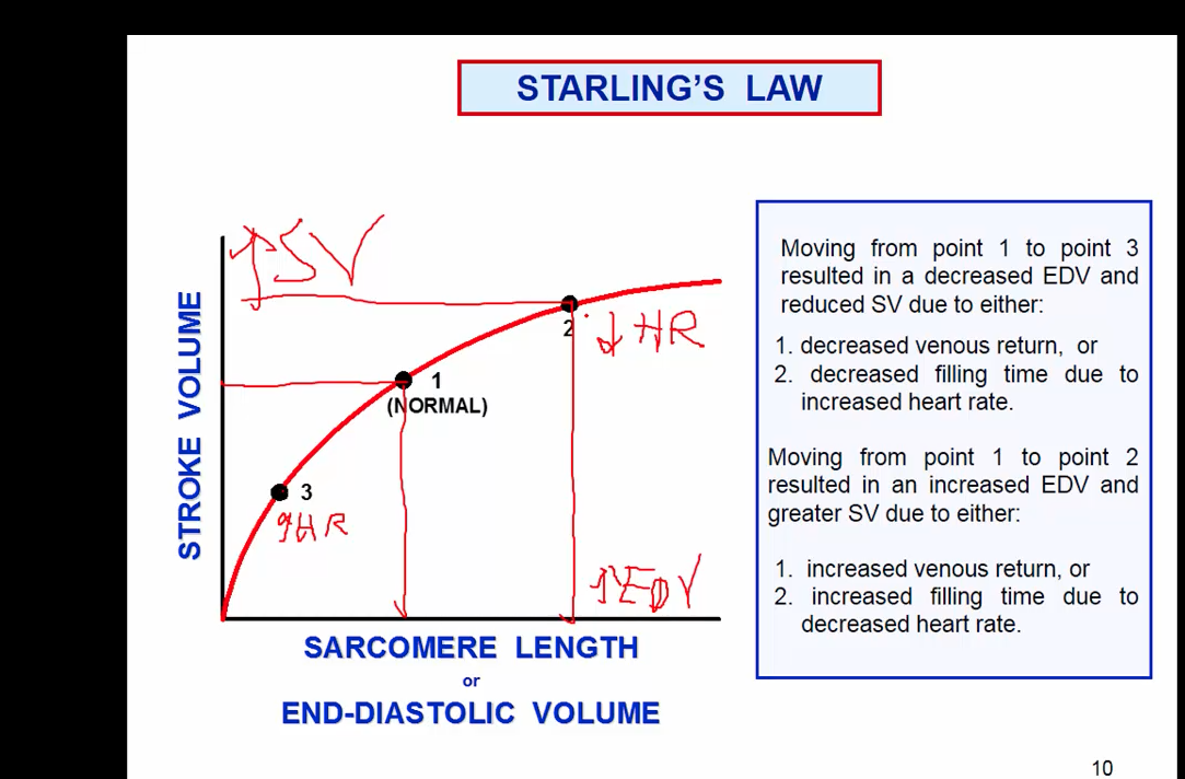Point 1 to 2 will be heart rate is slowed, higher EDV and contracting veins.