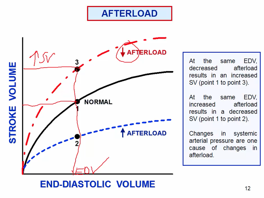 What happens to the afterload in the following