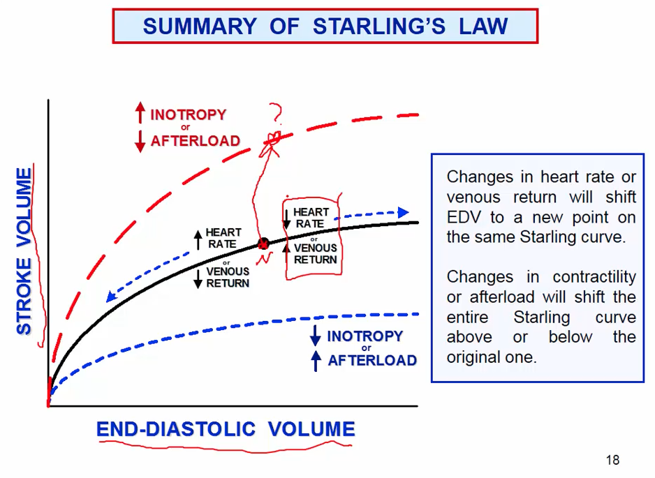 Increase in end diastolic volume will cause an increase in stroke volume as the reasoning associated with starling’s law