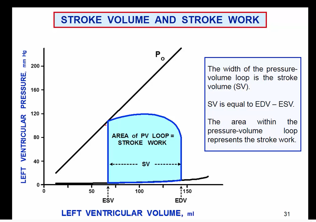 An important relationship to remember is that the volume of ejected blood is proportional to the [P(zero) - DP]