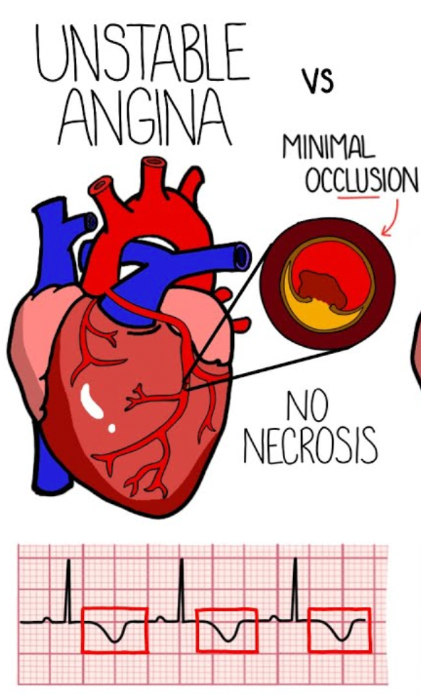 Intermediate form of ACS (causes less extensive damage to the heart)