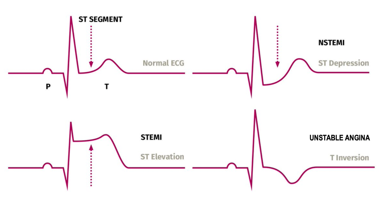ST Elevation (Stemi), ST Depression (NStemi), T-Inversion (Unstable Angina)