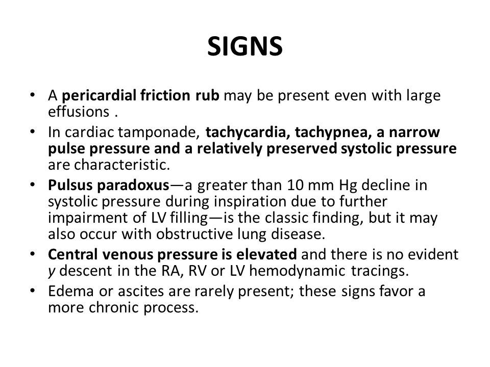 signs of pericarditis, signs of complications.