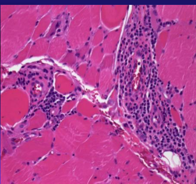 perimysial inflammation w/ CD4+ T cells