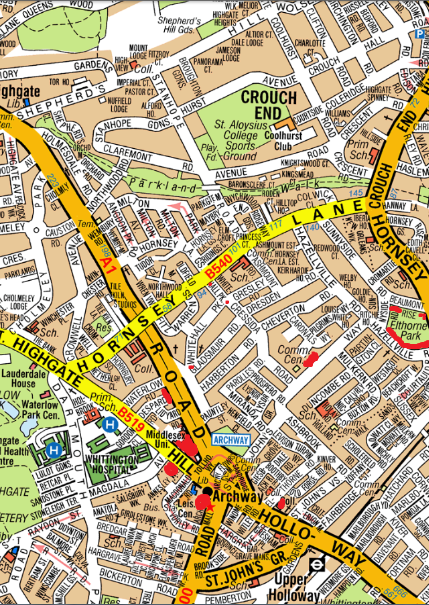 Arrival Details: Archway junction, L/By Highgate Hill, West on Highgate Hill