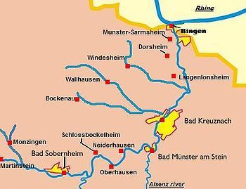Two towns that anchor the eastern end of the Nahe