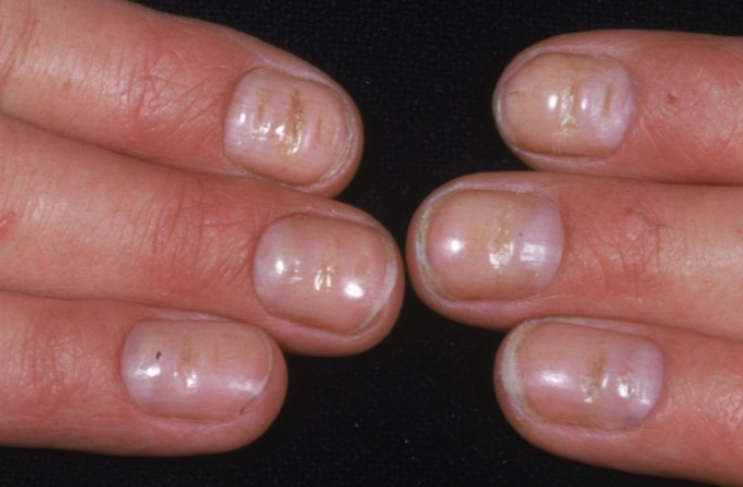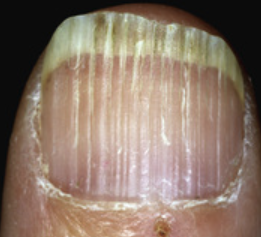 (altering longitudinal thickening and thinning or ridging of the nail plate)