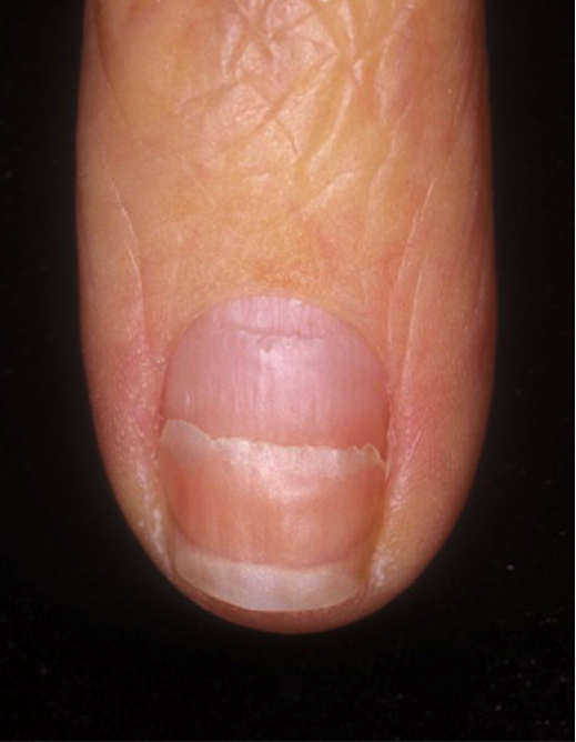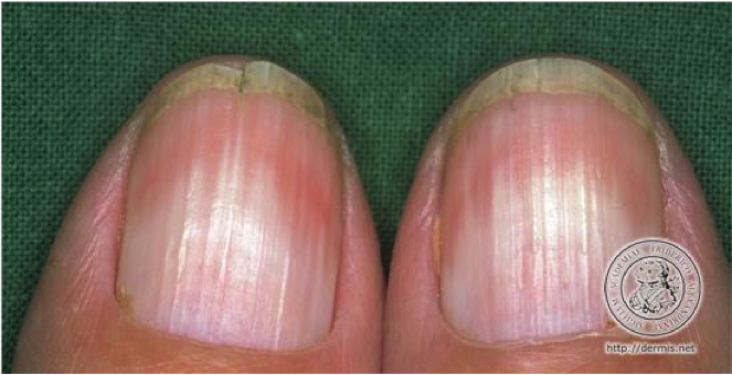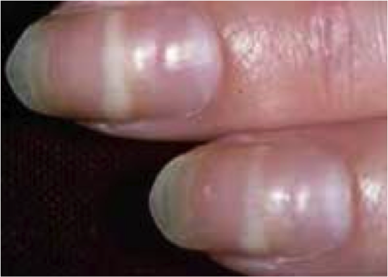muehrcke’s lines, lindsday’s nails(half and half nails), terry’s nails